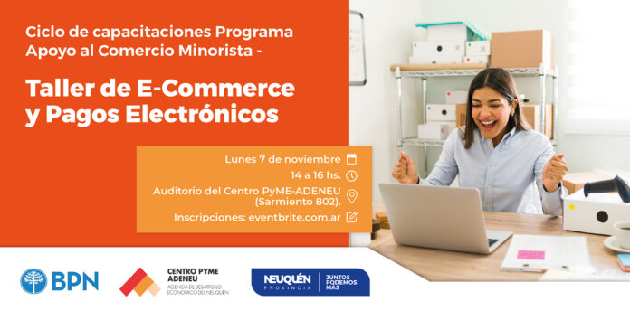 Como parte de sus acciones, el Programa de Apoyo al Comercio Minorista que implementa el Centro PyME-Adeneu del ministerio de Producción e Industria, brindará un taller sobre e-commerce y pagos electrónicos. La capacitación se realiza en alianza con el Banco Provincia del Neuquén (BPN).